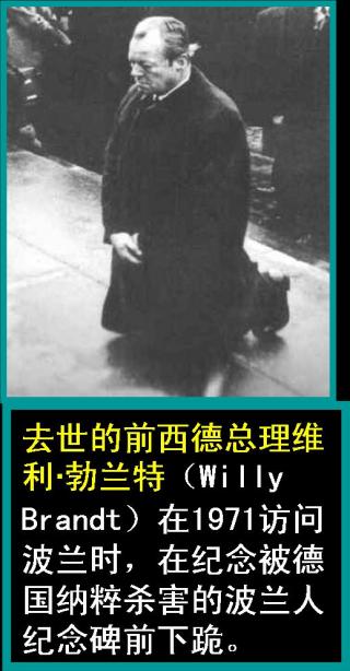 勃兰特在几年被德国纳粹杀害的波兰人纪念碑前下跪